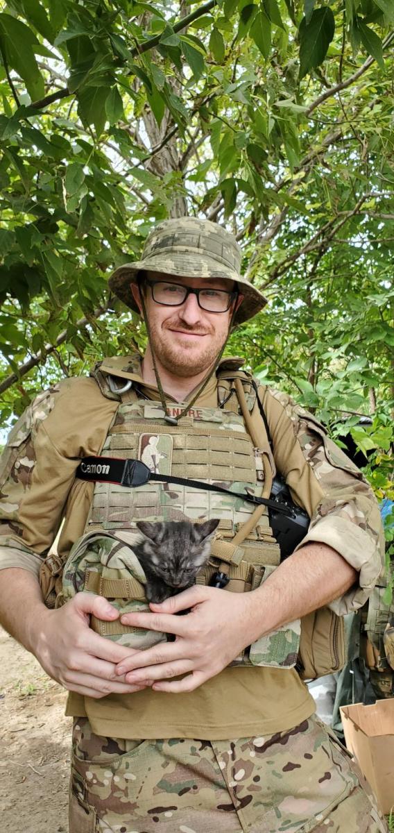Я повернувся на початку лютого 2022 року, щоб спробувати фотографувати життя перед вторгненням, яке, я знав, рано чи пізно станеться. Пам’ятаю, як мене розбудили 24 лютого звуки вибухів. На початку березня я полетів назад до США, щоб купити бронежилети для кількох моїх друзів із Збройних сил України. У травні я повернувся, щоб передати придбані речі друзям, і після кількох місяців суперечок із польською поштою завершив доставку броні. Один із моїх друзів запропонував мені приєднатися до 59-ї механізованої бригади. Вони тоді воювали в Миколаївській та Херсонській областях. Ми допомогли звільнити місто Херсон та навколишні території у листопаді 2022 року.