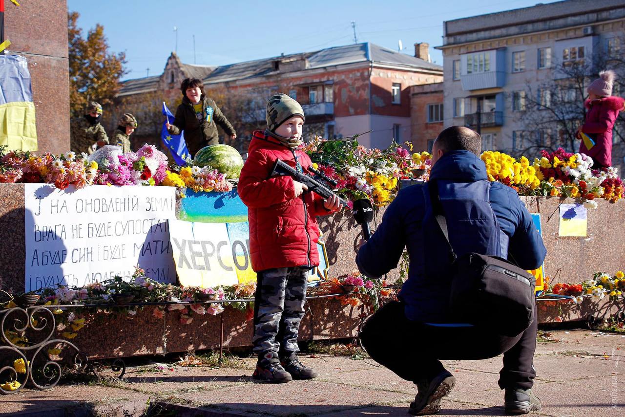 Наступного дня після звільнення міста, фотограф нарешті міг займатись своєю справою - робити світлини. На них атмосфера Херсону одразу після вигнання російських окупантів, коли містяни вперше за багато місяців насолоджувались п‘янким відчуттям свободи і завдяки Силам оборони знову стали господарями свого міста.