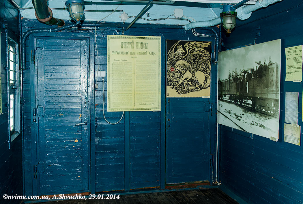 В п’яти залізничних вагонах розповідається про розвиток українського національного руху початку ХХ століття, ключові події Української революції 1917 року, проголошення Української Народної Республіки, дії більшовицької Росії проти молодої Української держави. Висвітлюються подробиці та хронологія бою під Крутами 29 січня 1918 р., наслідки й значення, звірства військ Михайла Муравйова в Україні та розстріл полонених українських юнаків-патріотів. В одному з вагонів розміщені документи, кіно-, фотоматеріали, що репрезентують подальшу боротьбу України за державну незалежність у часи Української революції 1918-1921 рр., гетьманату Павла Скоропадського, доби Директорії, Західноукраїнської Народної Республіки.